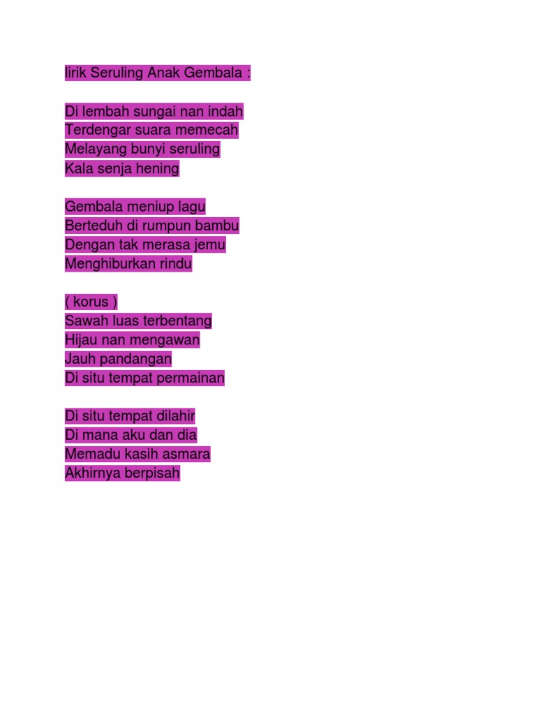 Lirik Seruling Anak Gembala Pdf